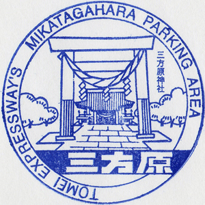 絵柄説明 : 「三方原神社」 (2017年3月 施設名称を「みかたがはら」→「みかたはら」へ呼称変更) スタンプは現状のまま「MIKATAGAHARA (みかたがはら)」となっている。 |
