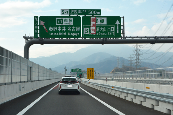 現在、伊勢原JCTから新東名方面は次の伊勢原大山ICから先、御殿場JCTまでが未開通。秦野中井・静岡・名古屋方面へ向かう場合は、伊勢原JCTの分岐を左方向、東名方面へ。