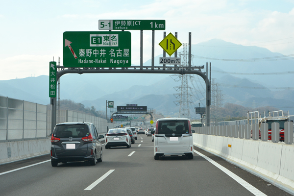 『名古屋方面は伊勢原JCTで左に分岐東名高速道路へ』
