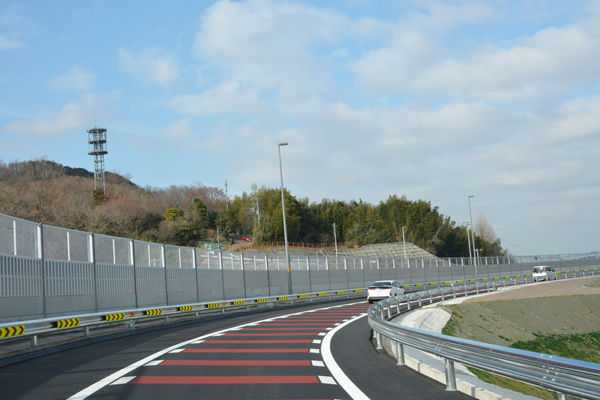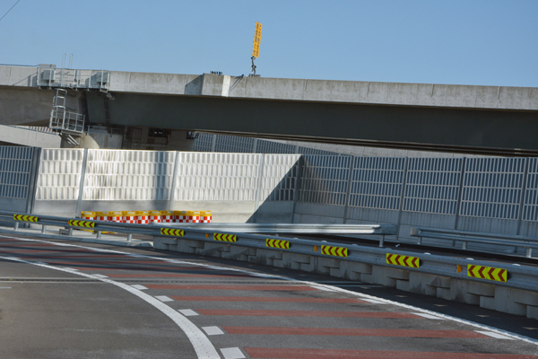 現在は両側4車線分での設計施工となっていますが、将来的両側6車線化にも対応できるよう、一部準備構造の設置や用地買収等は既に完了しているとのことです。 |