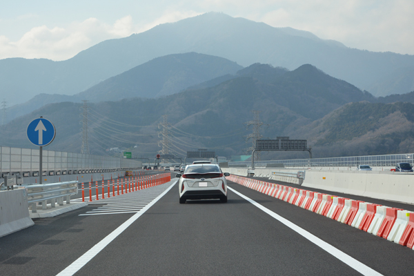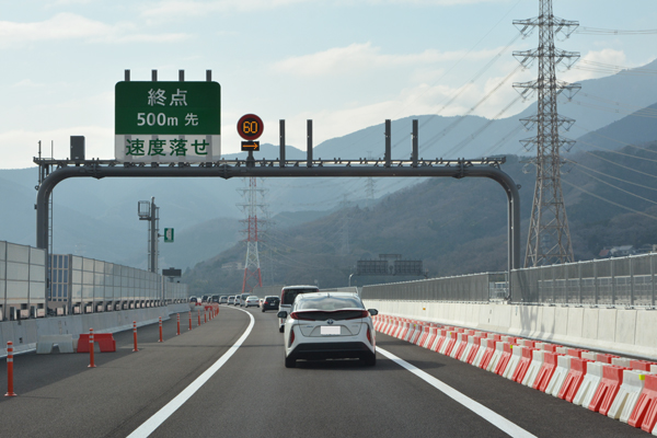 現在終点の伊勢原大山ICまでは、延長距離が短いためか、片側1車線の運用となっています。