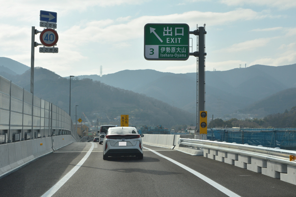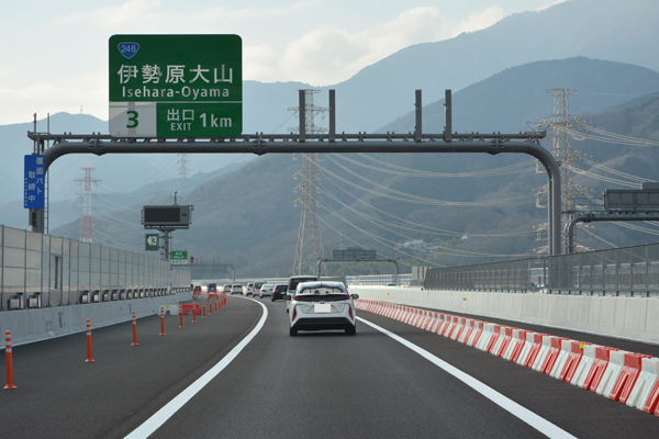 新東名・伊勢原大山IC方面の開通以前は、そのまま東名方面に流入するのみでしたが、開通後の現在は分岐路が完成。御殿場JCT方面に向けて大きく前進したことを実感します。